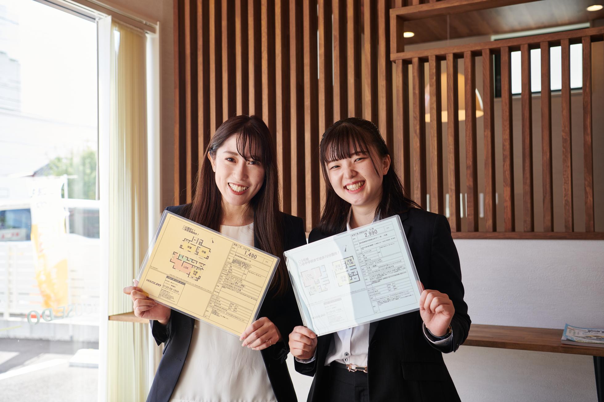 子どもの頃から "家が好き"、 "インテリアが好き"。 医療・飲食・ホテル事業などの経験を経て、趣味を仕事にしようと不動産業界に飛び込みました! 現在、典型的な長女気質の性格(世話焼きetc.)と営業アシスタントという役割がマッチし、 店舗の営業スタッフたちを支えることに尽力しています。