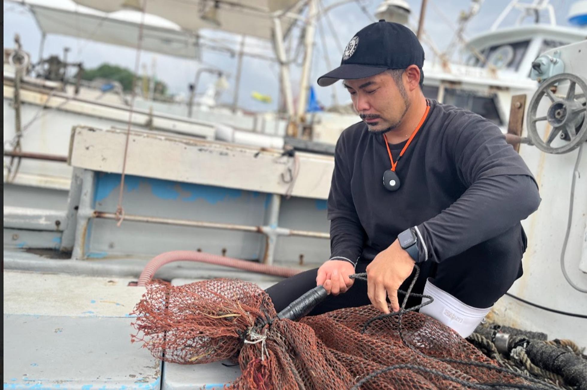 漁師さんへ落水時のデモをするために海に飛び込む代表