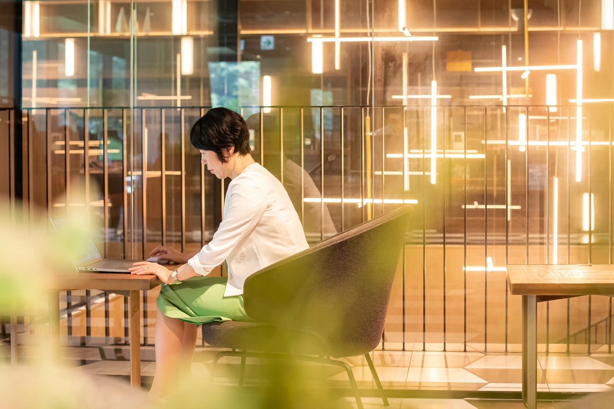 普段は九段南にあるシェアオフィスに出社しています。緑が多くてとても素敵な空間で、見学してすぐ入居を決めたほど!お気に入りはテラス。天気のいい日は、ここでよくランチを楽しんでいます。