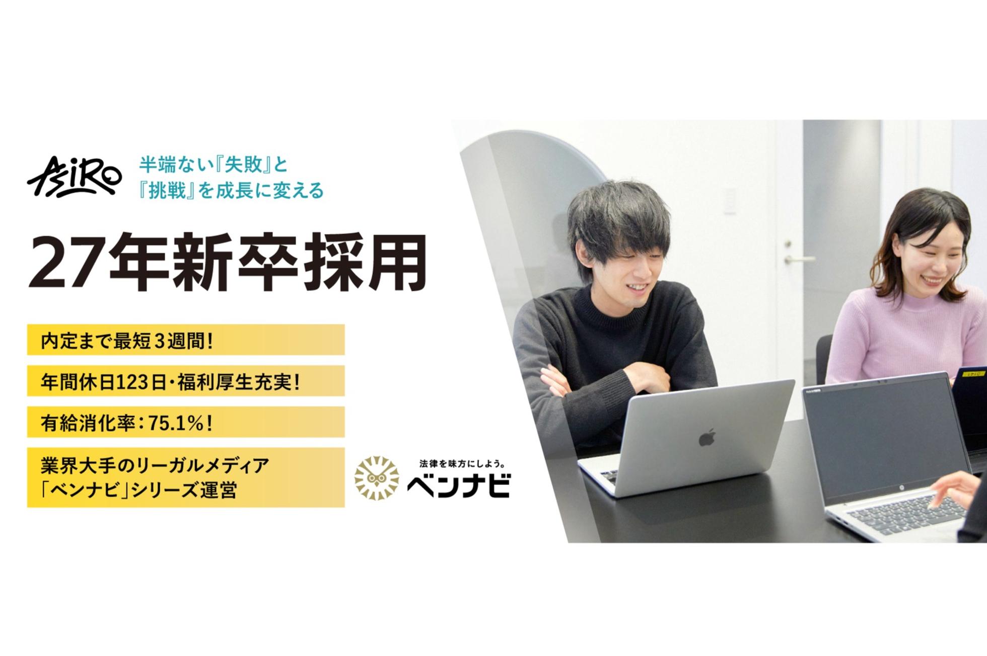 私たち「株式会社アシロ」は、Legal×Techonology|法律・弁護士業界とインターネットを結びつけた事業を展開し成長を続けるベンチャー企業です。 2021年7月にマザーズ(現:グロース)市場へ新規上場し、今後更なる事業成長を加速させていきます。 社会的基盤である法律・弁護士業界とインターネットを結びつけた事業を展開しています。 デジタル技術やウェブマーケティングノウハウを活用して、インターネット上で法律情報や弁護士情報を提供するリーガルメディアサイトの運営を主要事業としています。 社名の由来である『アシロ』は 「世界中の誰よりも深くユーザーとお客様を幸せにしたい」 「社会基盤となりうる水準までサービスを深化させたい」 という思いから、世界最深地点で生存が確認された深海魚の名前(ヨミノアシロ)を拝借したのが社名の由来です。 創業時から一貫してその思いが変わることはありません。 ■リーガルメディア事業 「法律の民主化を図り、法律トラブルで悩むユーザーをゼロにする」 法律問題を抱える方が、ニーズに適した専門家と出会うため法律系ポータルサイトを運営しています。「労働問題」「離婚問題」「相続問題」「交通事故」「刑事事件」などに注力する法律事務所・弁護士にフォーカス。分野特化型法律メディアとしては、最大級のメディアとなりました。 『弁護士さえいれば解決できた』『こんな大事にはならなかった』という法律的な問題はいくつもあり、その問題をできるだけ早く、ユーザーが納得のいく解決として頂くために、私たちは『弁護士とユーザーを繋ぐ』架け橋になるサービスを運営しています。 法律をより身近な存在にし、弁護士に頼りやすい・弁護士が力を発揮しやすい環境を整えることで、ユーザーが抱える心配ごとが限りなくゼロになる社会を目指します。 *サービス一覧 https://asiro.co.jp/business/lawyer-media/ ■派生メディア事業 「ITの力で不安や不満を解消して、ユーザーを幸せにする」 大手探偵事務所と提携した「浮気調査ナビ」や、転職したい人に最適なエージェントを紹介する「キャリズム」など、法律問題から派生したメディアを複数運営しています。 法律トラブルの発生に伴う、その他の悩み・トラブルを解決に導くことで、生き辛さを抱えている人を助けることを目指しています。 *サービス一覧 https://asiro.co.jp/business/lawyer-media/ ■HR事業 「クライアントと求職者、双方にとって最善の出会いを提供する」 培ってきた顧客網や業界知識を活用し、弁護士有資格者をはじめとしたプロフェッショナル人材の紹介事業を行っております。転職者の不安を取り除くとともに、採⽤の架け橋となることを通じて、⼈材採⽤の架け橋となることを通して個⼈・企業・法律事務所の成⻑、そしてより良い社会の実現に貢献します。 *サービス一覧 https://asiro.co.jp/business/legal-hr/ ■保険事業 日常生活で遭遇したトラブルの解決を弁護士に依頼したときに生じる費用を補償対象とする「ベンナビ弁護士保険」を取り扱っております。弁護士費用がネックとなって法的弱者が救済されない等といった社会課題の解決の一助となるべく、本保険商品の普及を進めております。 *サービス一覧 https://asiro.co.jp/business/insurance/ ----------------- ・従事すべき業務の変更の範囲: (雇入れ直後)入社直後の変更なし (変更の範囲)ご本人の業務適正により、当社業務全般に変更の可能性あり ----------------- ・就業場所の変更の範囲 (雇入れ直後)本社及び労働者の自宅、その他自宅に準じる場所(会社指定の場所) (変更の範囲)会社の定める場所(テレワークを行う場所を含む)