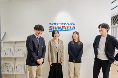 ▼「クリエイティブ×ロジック」のプロフェッショナルが集まる場所 シンフィールドは、マンガという感性的なコンテンツをマーケティングという論理で「成果」へと導く プロフェッショナルが集まる場所となっています。 有名マンガIPやマンガクリエイティブ、マンガマーケティングの戦略(ロジック)を掛け合わせる独自の体制を構築。 単なる制作代行ではなく、クライアントの事業課題を解決するソリューション提供しています。 ▼パイオニアであり、チャレンジャーであり続ける 業界のフロントランナーとして市場を開拓してきた私たちですが、守りに入ることはありません。 「有名マンガIP×マーケティング」という新たな領域をスタンダードにし、社員一人ひとりが失敗を恐れずに挑戦し進化し続けることを組織全体で推奨しています。 【抜擢・キャリア形成の実績】 年次や社歴に関わらず、意欲と実力があれば裁量あるポジションを任せる風土があります。 <実施実績> ・若手リーダーの輩出 入社年次や経験の有無を問わず、20代でマネージャー・管理職へ抜擢 ・女性管理職の積極登用 性別に関わらずパフォーマンスを正当に評価しリーダー層へ登用 ・プロフェッショナルとしての発信 業界イベントやマーケティングセミナーへの登壇機会の創出 ・キャリアの可能性を広げる異動 本人の志向に合わせ部門を横断したジョブローテーションを実施 こうした「挑戦の連鎖」が組織の熱量を高めています。 安定した事業基盤がありながら、ベンチャーマインドを持って自ら機会を掴み取ろうとする。そんな意欲あふれるメンバーが集まっています。