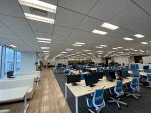 フリーアドレス制のオフィススペース。自由に好きな席で仕事をすることができます。