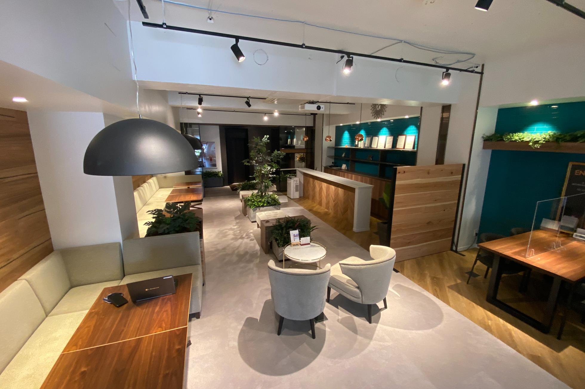 東京オフィスのおしゃれなラウンジスペースで、打ち合わせや商談をおこなう事も。その日の気分に合わせた音楽も流れています♪