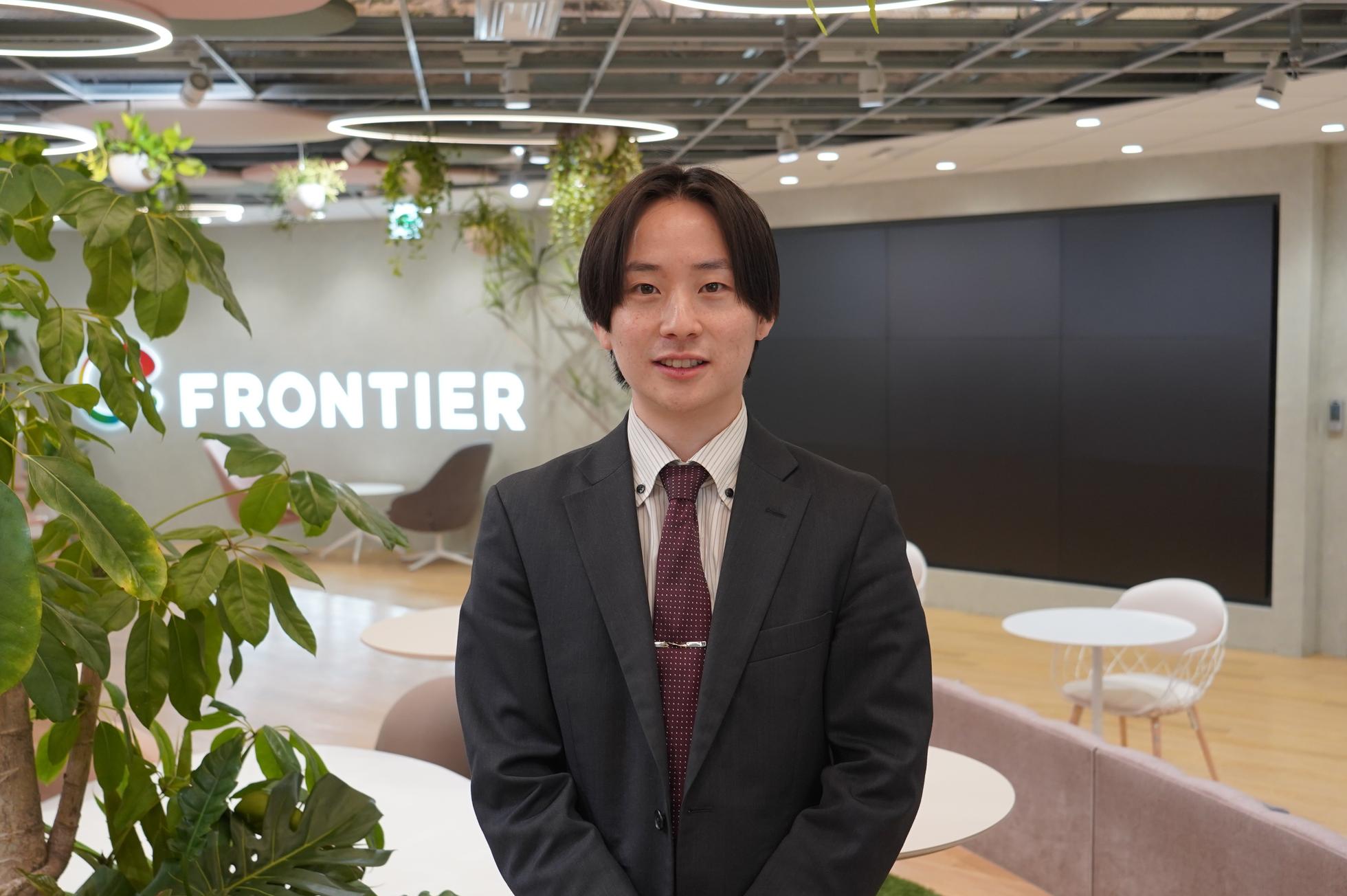新卒でフロンティア株式会社に入社し、法人向け営業を経験したのちに現在は新卒採用担当として働いています🐙