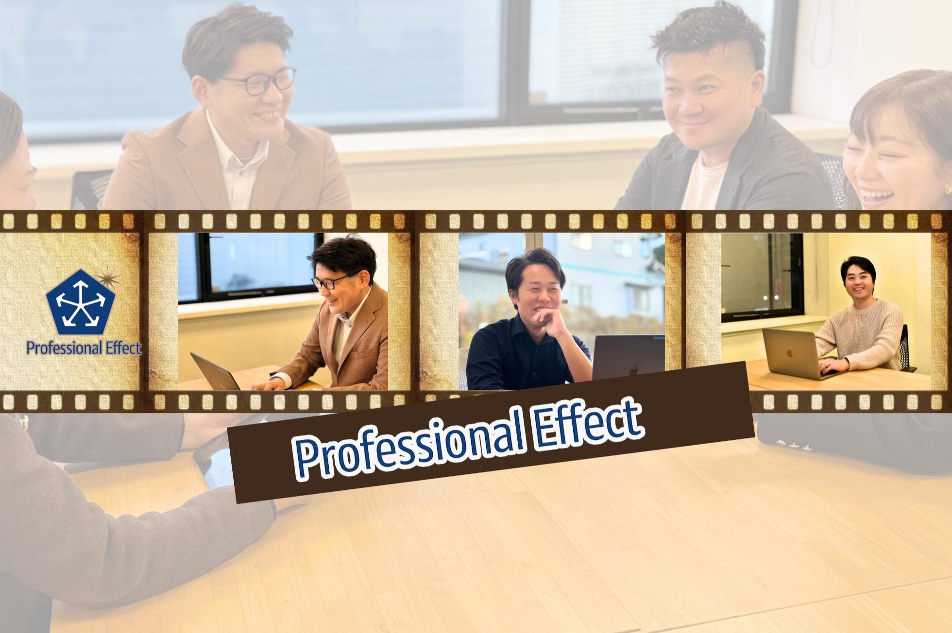 【『サービス』を提供している会社です】 株式会社プロフェッショナルエフェクトは、 ITコンサルティング事業を主軸に2019年8月に創業した会社です。 歴史はまだ浅い会社ですが、おかげさまで着々と事業の裾野も拡がり、 今では、ITソリューションと地域活性化の両輪で成長しています。 ■「IT業界の課題解決屋」として、技術の先にある満足を届ける 私たちはITコンサルティングを主軸に、Web/アプリの受託開発やSES事業を展開する「サービス提供企業」です。 単にコードを書くのではなく、お客様が抱える課題を解決し、 その先の満足(=サービス)を提供することを第一としています。 ■事業の柱 ITコンサルティング、システム・アプリ受託開発、SES ■新しい挑戦 福島県玉川村との連携による「地域DX」や「スマート農業」など、地方創生にも注力。