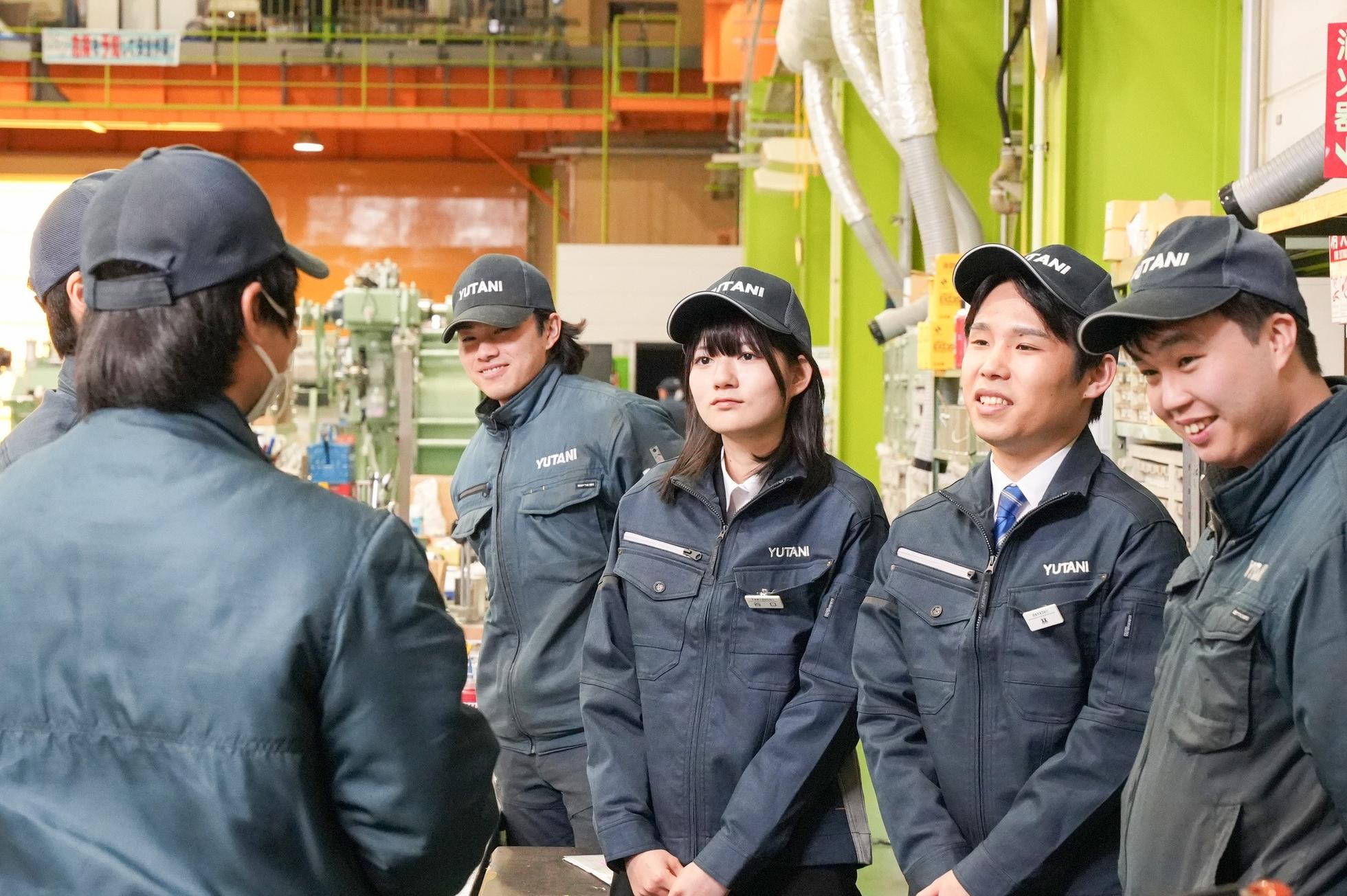 私たちの仕事は、チームワークで取り組んでいく仕事です。お客様に満足いただける製品、そしてより良いサービスを提供するためには、メンバー同士が思いやりを持ち、一つのバトンを繋いでいかなければいけません。大切なのは、明るく、仲間とコミュニケーションを取りながら、直面する壁を乗り越えようとする前向きな気持ちです。その気持ちを持ち続けることで、必要な知識や技術は自然と身についていきます。 株式会社ユタニは、常に変化するお客様のニーズを、持てる技術で具現化し、社会に貢献できる企業を目指しています。 私たちと一緒に新しい挑戦に取り組む仲間を、心からお待ちしています。