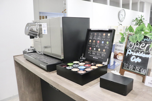 執務室はBGMも流れており、オープンでリラックスできる環境です。色々なフレーバーがあるので、各々コーヒーを飲んでリフレッシュしています。
