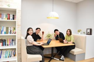エージェントのオフィスには、こんなリラックスできる打ち合わせスペースがあります。 チームメンバーとの気軽なディスカッションや、一息つきたいときにもぴったりの場所。 写真のように、いつも笑顔とアイデアがあふれる空間です。