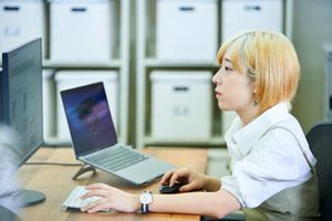 制作ルームで作業中。