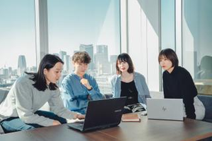 弁理士を含む少数精鋭の法務チーム。取締役や経営層と直接意見交換できる近さも魅力です。