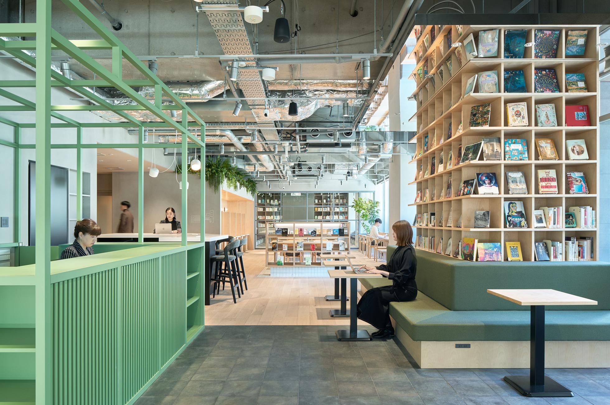 壁には、メンバーがDIYした本棚があり、建築やデザイン・組織・営業など幅広いテーマの本(時には漫画も)が置かれています。手に取り合いながら、お互いの興味について話すシーンもよく見られます。