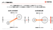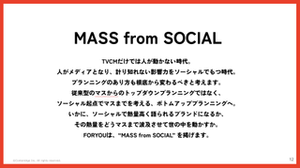 広告業界は「大手のM&A」「専門特化企業の増加」「内製化」「AI活用」の4つが同時進行する転換期です。多くの企業が人手不足に直面しており、TV・販促・PR・SNS・CRMなどを横断して統合できる総合広告会社の価値はむしろ高まっています。 一方で、AIが一般的なインサイトや標準的な企画を作れるようになったことで、人間にしか出せないゼロ次情報やオタク的知識、そして“外れ値”を生む企画力が重要に。FOR YOUもAIを活用しながら、実装・編集・リスク判断といった実践知を強化していきます。 上記を踏まえ、私たちが実現したいのは、専門特化している広告会社ではなく、ソーシャルという強みは持ちつつも、マス広告まで提供することができる“総合広告会社”となることです。 この価値を提供するために、「MASS from SOCIAL」というビジョンを掲げています。 参考記事 ▼ソーシャル起点の消費者行動モデル「5E MODEL」を提唱する総合広告会社FOR YOUの狙いとは https://www.advertimes.com/20250930/article515635/ ▼「FOR YOU広告カンパニー」総合広告事業の目指す場所 https://note.com/foryouinc/n/n9a2c8eaf8367