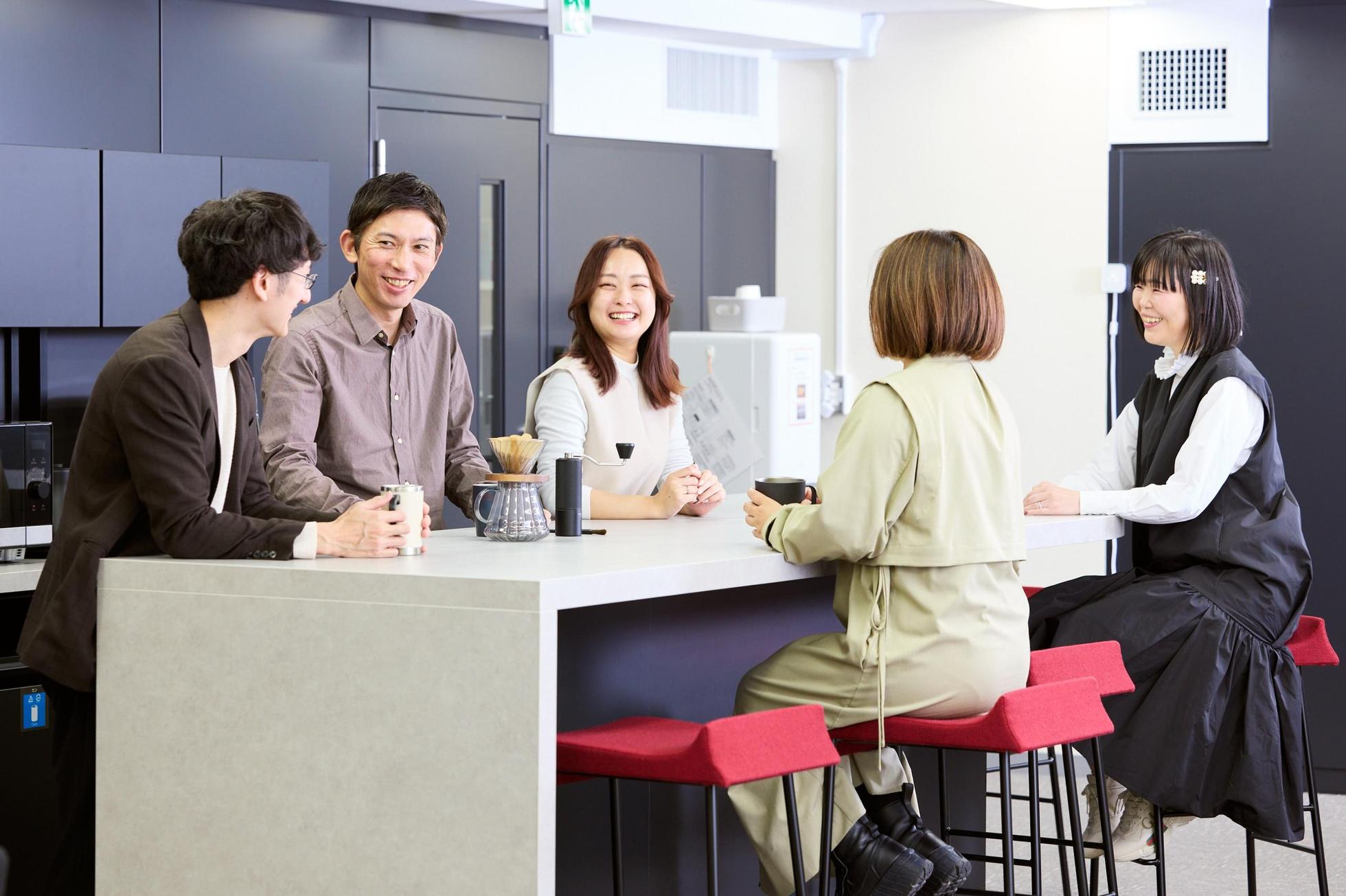 2022年7月からよりリモートワークと出勤のハイブリッドを推進すべくWeWorkに本社移転。素敵なラウンジスペースでは毎日16時以降になるとビールも飲み放題です。オン/オフの切り替えは生産性高く働くには必要だと考えています。