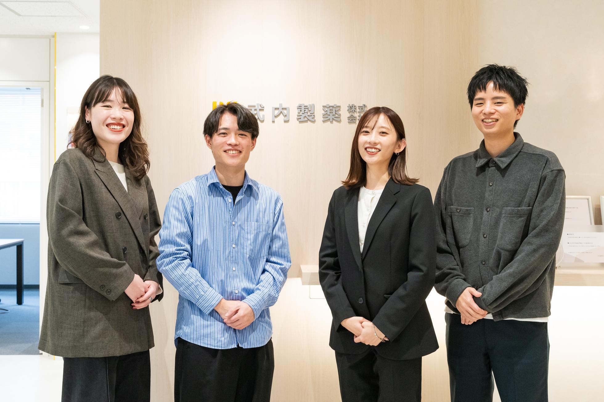 【こだわり】 商品企画・原料調達・製造・販売戦略・プロモーションまで全てを一貫して行うことで、高いクオリティの商品を可能な限り低価格で素早くお客様のもとへ届けることができています。これが私たちのこだわりです。 全てはお客様の幸せのために、私たち自身で実行していくことで自分たちもお客様にも満足していただけるものを提供することを目指しています。 【裁量権】 今はまだ世の中にないものを生み出そうとするからこそ、武内製薬には決まりきった仕事はほとんどありません。常に新しいことに挑戦し、改善し続けていく。いい仕事に年齢や役職は関係ありません。それぞれが自分の仕事に裁量権を持ち、責任を持って仕事に取り組んでいます。 【雰囲気】 平均年齢は30歳と若いメンバーが多いですが、年齢や在籍年数に関係なく自分の仕事に責任を持って取り組む人ばかりです。開放的なオフィスでチームを跨いだ交流も多く、メンバー全員が互いに刺激を受けて成長しています。 成長のために自ら努力する社員も多く、入社後半年で執行役員になった人もいます。
