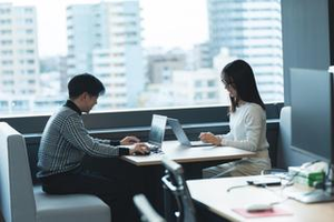 本社のフリースペースは憩いの場🌱会議やイベントも開催できる広々としたスペースなので、お昼休憩に利用する社員も多くいます!LOVOTのみーちゃんもゆったりしてます☺︎