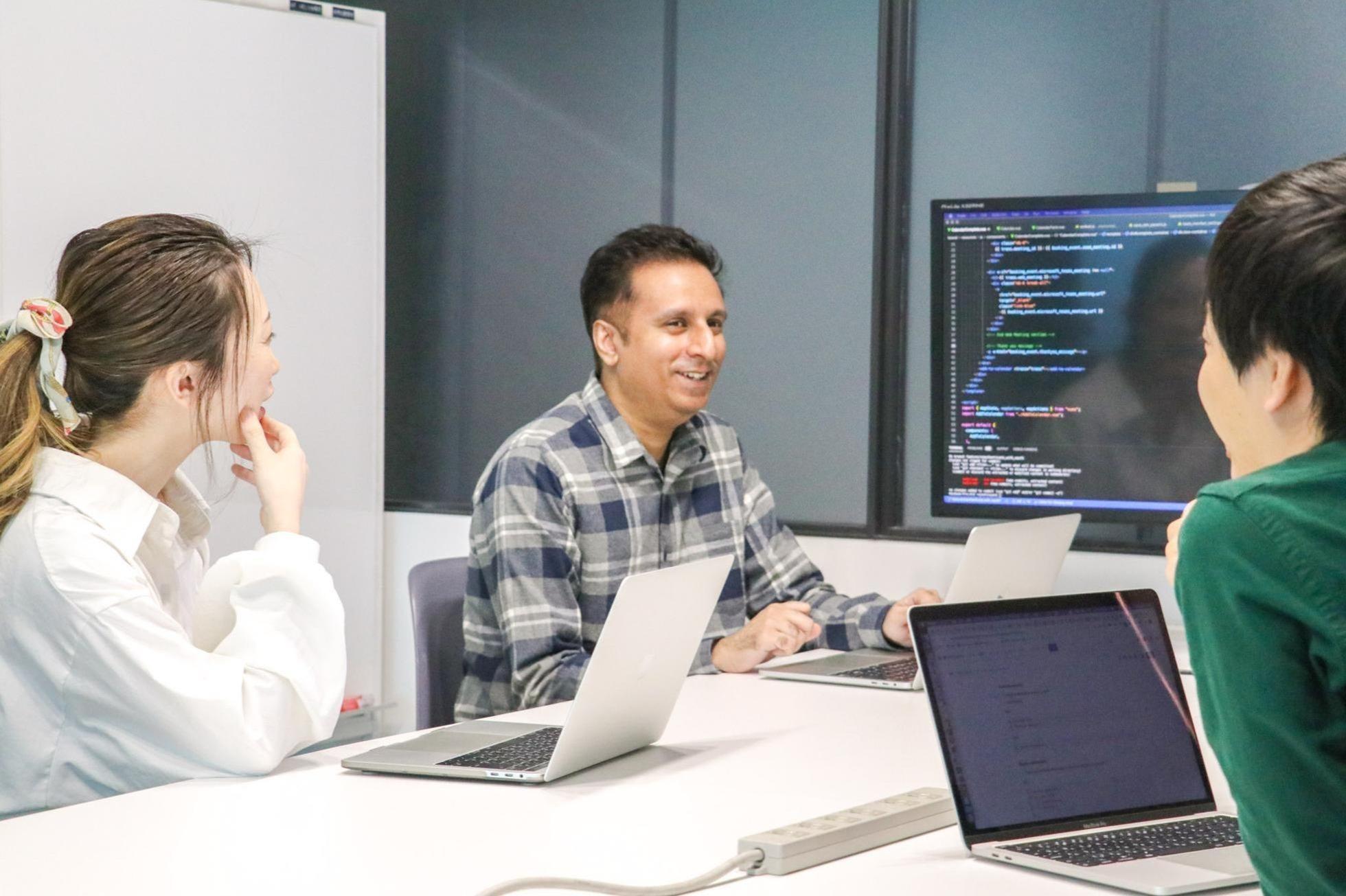 メンバーは少数精鋭のチームです。また、リモート環境のため、日々円滑なコミュニケーションを心がけています