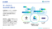当社は「データの力で社会を前に進める」をミッションに掲げる、KDDIと三井物産の合弁会社です。 人流データを始めとするビッグデータの解析やモデリング技術に強みがあり、社会・都市・経済の様々な事象を詳細に可視化・分析することで、まちづくりや観光、交通、土木、防災、商業戦略(小売等)などの高度化に貢献しています。 特に、ヒト1人1人、車1台1台レベルの動きを再現できる高粒度な人流データ「GEOTRA Activity Data(ジオトラアクティビティデータ)」は、自治体や国内外の企業様の新たな意思決定の基盤として高く評価されています。 更に、社内の取り組みだけでなく、国内有数の複数の大学との共同研究などを通じて位置情報×AIのプロフェッショナルとして自らを進化させ、直近ではAIやビッグデータを基にした将来予測/シミュレーション技術を確立し、より高度な価値提供が可能になっています。 創業以来3年を経て、数多くの大手企業・自治体・研究機関との取り組みを通じて事業も組織も急速に成長しています。また、国内に留まらず海外顧客向けのサービス提供や、類似事業の開発にあたっての包括的な技術支援といった海外展開も始まっています。