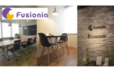 社名は、「フュージョン(融合)」と「パイオニア(開拓者)」を掛け合わせた造語に由来。ロゴは「創業当時から続けている3つの事業」を表現している。