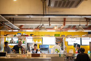 オフィスの隣には弊社の運営する「MOTOKYES」のカフェでランチを。