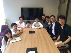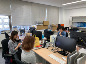 会議室にて、メンバーで週次MTGをしている様子です。最近はリモートTV会議も増えてます。