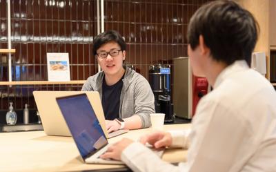 2021年5月にWeWork渋谷スクランブルスクエアへオフィス移転をしました。シェアオフィスならではの共用エリアには、お茶やコーヒーなどのフリードリンクバーがあるので、ソファでゆったりと気分転換もできます。
