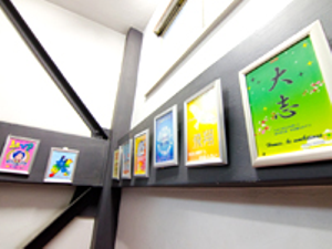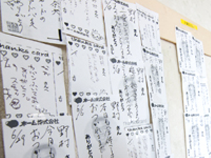 カベ一面に貼りだしたサンクスカードは笑顔の原動力です。