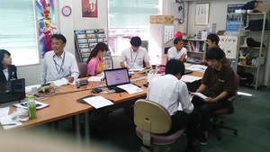 楽しい仲間たちです。Jリーガーの近藤選手も応援しています。