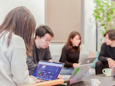 自デスクもございますが、オープンスペースでその日の気分に合わせ、自由に作業できる環境となっております。コミュニケーションも活発で、和気藹々とした空気感です。