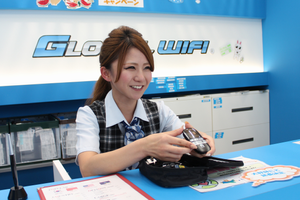 主要空港にあるカウンター。『グローバルWiFi』や『NINJA WiFi』の貸出をしており、外国からのお客様もいらっしゃいます。