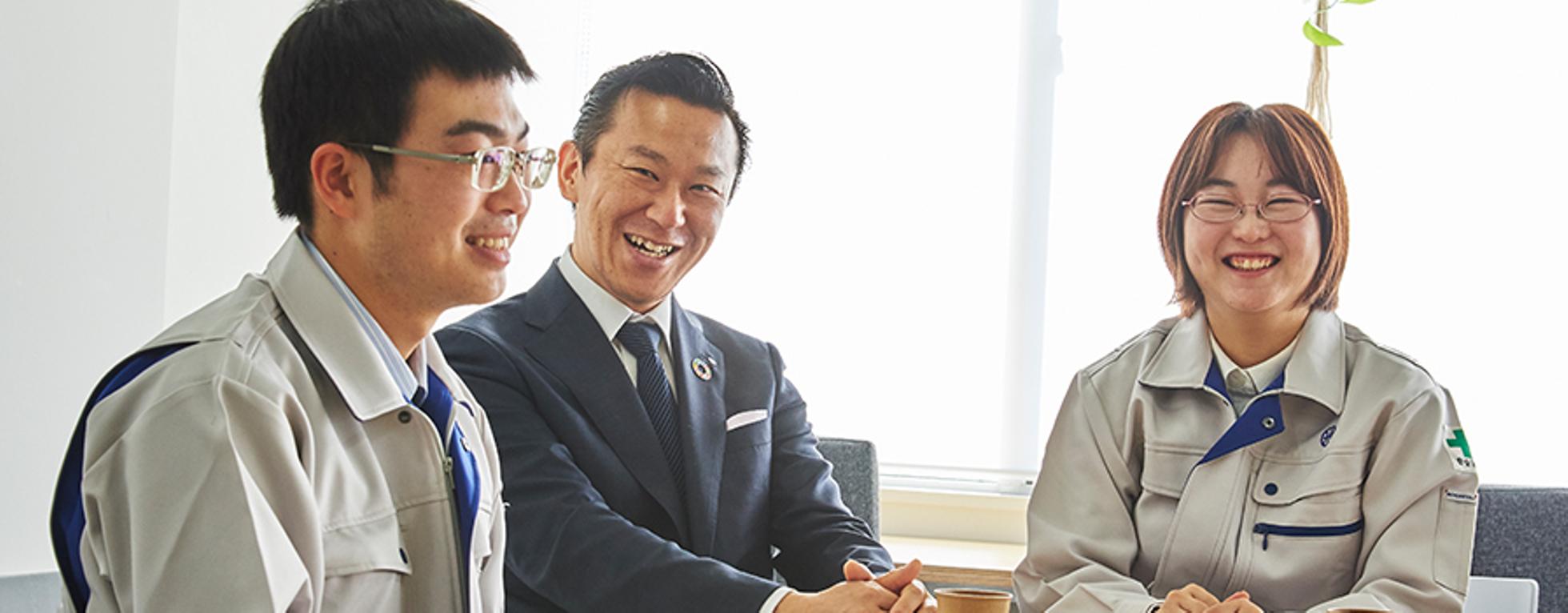 【企業理念】 心すなおに 〜全ての人のため 地域のため 未来のために〜 わが社は、偏見や先入観に左右されることなく事実に基づき何が正しいか本質を見定める誠の心、明るい物の見方の出来る心をもって、社会資本の形成充実への貢献と地域経済の発展に寄与することで、全社員とその家族、お客様、地域、未来の幸せを築くことを目的とします。 ①本質を見定める誠の心、明るい物の見方の出来る心=すなおな心 私たちは、すなおな心が人間を強く正しく、聡明にすることを理解しています。そのため原理原則に基づき何が正しいかを見極めて、それに従い使命感を持って行動します。 ②社会資本の形成充実への貢献と地域経済の発展に寄与 私たちは国土保全開発、産業基盤の建設(小資源開発、交通機関の整備、エネルギー開発)に貢献し、ものづくりを通して地域経済の発展に寄与します。また仕事を通して人財の育成と教育に貢献します。 ③全社員とその家族、お客様、地域、未来の幸せを築く 私たちはコンプライアンスを遵守し、近江商人の言う「売り手良し、買い手良し、世間良し」の三方良しに「未来(将来世代)」を加えた四方良しの考え方に基づき行動します。そのため社員、その家族、お客様、地域、未来の不利益に繋がることについては取り組みません。 【ビジョン】 シンカ発展し続け、近畿屈指の優良企業となります 深化発展私たちは深く考え行動に移す企業です 進化発展私たちは変化し前進し続ける企業です 真価発展私たちは真の価値ある企業です ①対顧客:思い描く快適環境を高いレベルで現実化 私たちはお客様が思い描く理想の状態(土木・建築・舗装・リニューアルなど)を価値ある品質で提供します。お客様の想いをかたちにする過程では、積極的コミュニケーションを取ることで願望を明確にし、安全を全てに優先しながら高い品質の成果品を納めます。また、生活の基本的要件である「衣食住」すべてに貢献する担いを全うすることで多くの人に安心安全を提供します。 ②対社員:働き甲斐のある職場環境 私たちは社員が物心共に満たされ、家族に仕事内容と職場環境を自慢できる働き甲斐ある組織環境を提供します。また社員同士が思いやりの心を持ち固い絆で結ばれた一体感ある組織となります。 ③対社会:地域社会の発展と安心安全 私たちは数多くある建設業者の中でも地域になくてはならない信頼のおける安心企業として地域発展に寄与します。また安心安全な暮らしを守り続ける地域の建設業者としても社会に大きく貢献します。