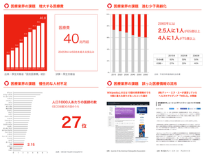 医療業界には課題が山積みです。メドレーはこのもっとも大きい課題に真正面から取り組んでいきます。