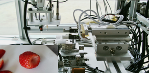 ◆イチゴのヘタ取り/装置投入作業◆ 洋菓子や大福に使われるイチゴの加工を行う工場様にて、ヘタ取り作業は一部自動化されておりましたが、加工装置への投入は人力でしか行えませんでした。実作業を効率的に自動化するコンサルティングをさせていただき、自動化したことで人手不足が解消されました。 既存設備も流用できたことで、低コストで導入することができました。