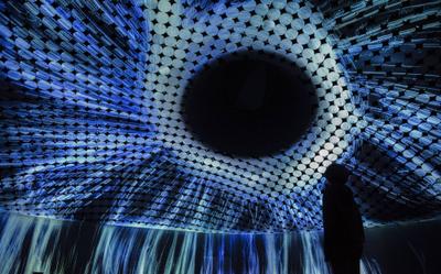 [teamLab: Transcending Boundaries]壁から床へと流れ落ちる滝をデジタル体験させる新作と、蝶の群れを通じて絡み合う他5作品を一つの空間に置く大展示をロンドンで開催。