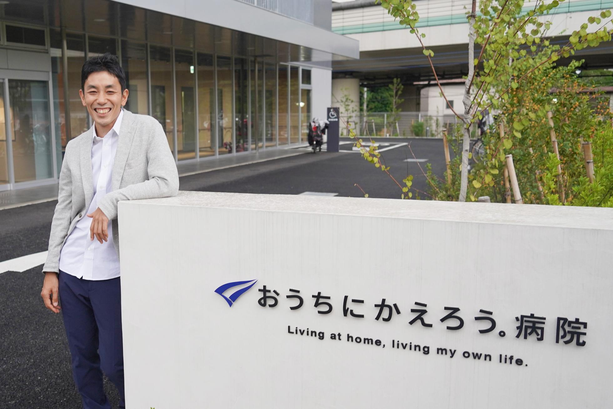 新設病院の前でTEAM BLUE全社員がそろいました。みんなの思いが詰まった病院に、「人」というイノチの灯が灯りました。これからこの病院で、「おうちにかえる」を目的とした、新しい医療のカタチに挑戦し続けます。社員数も200人を越えました。それでも顔の見える関係を大切に、お互いを必要とし、助け合って仕事をします。(撮影:おうちにかえろう。病院)