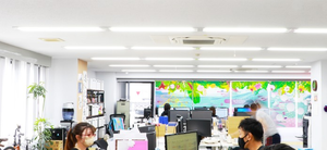 オフィスは広々。奥のロールカーテンも自社商品。クリエイティブチームがデザインしたものです