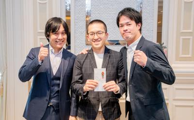 社員総会にて。みんなで”SoLaboのSポーズ”を。