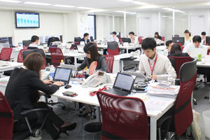 コチラは営業フロアの一枚。仕事のON/OFFがはっきりした、メリハリのある働き方を推奨しています。