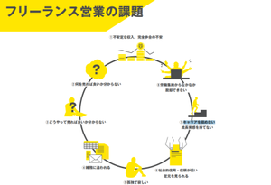 「フリーランス営業のエンパワーメント」に基づき、当社が提唱する「フリーランス営業の8つの課題」を解決していきます。 (1)営業代行案件紹介 (2)代理店販売 (3)営業研修・案件相談・営業同行無制限 (4)営業事務サポート (5)コミュニテイの提供 (6)信頼・信用サポート (7)チームマネジメント・新規事業立案のチャレンジ (8)ストック収入へのシフト 出社義務、MTGの強制参加、売上の目標・ノルマなど、会社から強制することは一切ありません。働く時間、休む時間、働く場所、提案する商品、報酬は全て自分で決める、という主体的な働き方です。このように、一人一人の悩みを改善し、仕組みを整えることで、フリーランス営業として「自分らしく」働くことで、幸せになれる人を増やしたいと考えています。