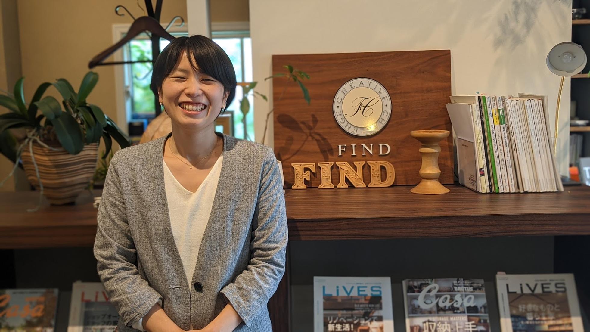 店舗設計の個人事務所アシスタントを経て、2014年にFINDの前身会社に入社。 デザイングループ設計チームにてリフォーム・リノベーションの設計を担当しています。 前職の経験を活かして、店舗設計を担当することも多いです。 2018年に産休、育休を取得し、現在は時短勤務中です。
