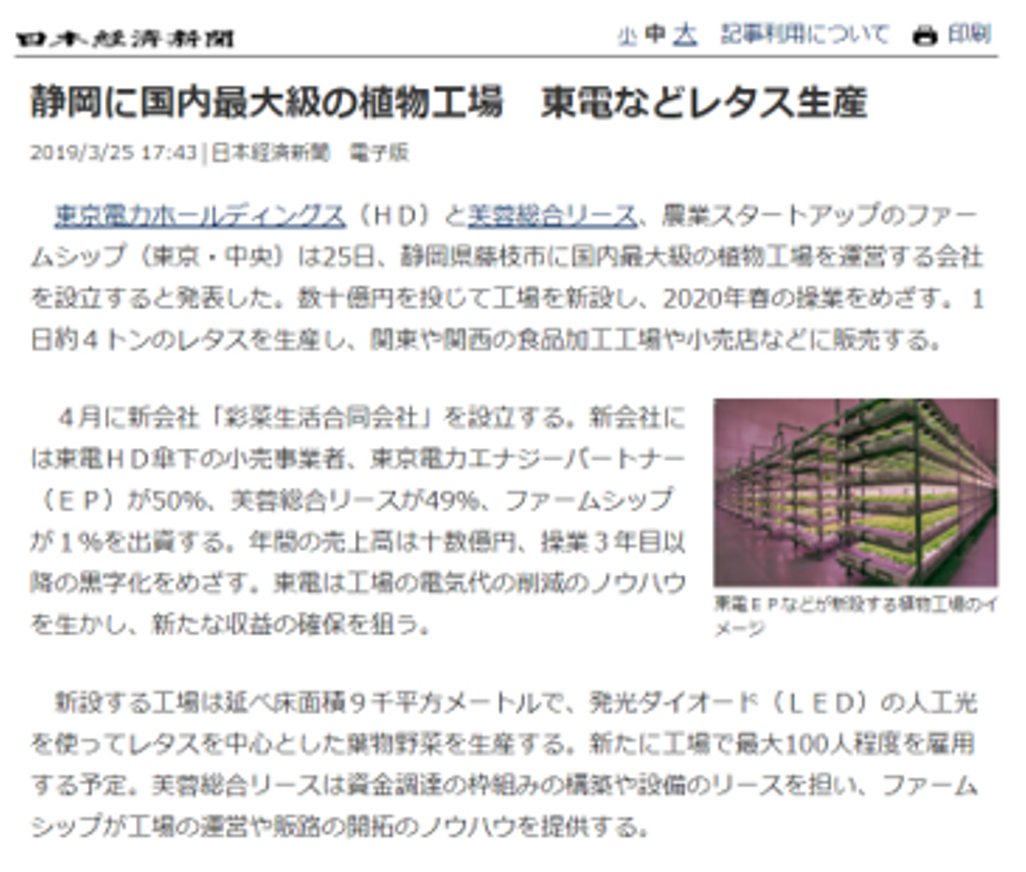 【20190325】JV設立~ファームシップ×東京電力エナジーパートナー×芙蓉総合リース~国内最大規模の生産・販売ネットワークへ!